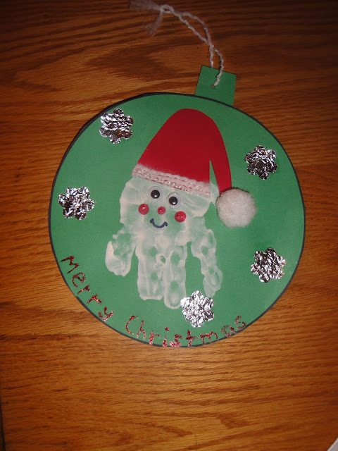 5. Once protective coat has dried thread string through hole and wahlah...new ornament :) Bennett was so proud!